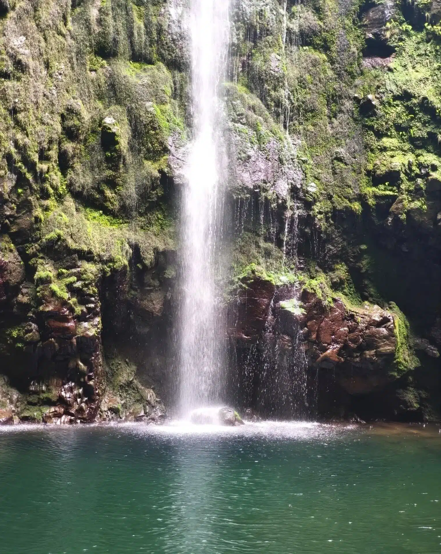 Along the way, natural viewpoints reveal sheer cliffs and sweeping views of Madeira’s northern landscapes. The constant sound of flowing water accompanies hikers all the way to the final destination: the Caldeirão Verde, an impressive natural amphitheatre where a 100-metre waterfall plunges into an emerald-green lagoon at the base of a rock wall covered in vegetation.